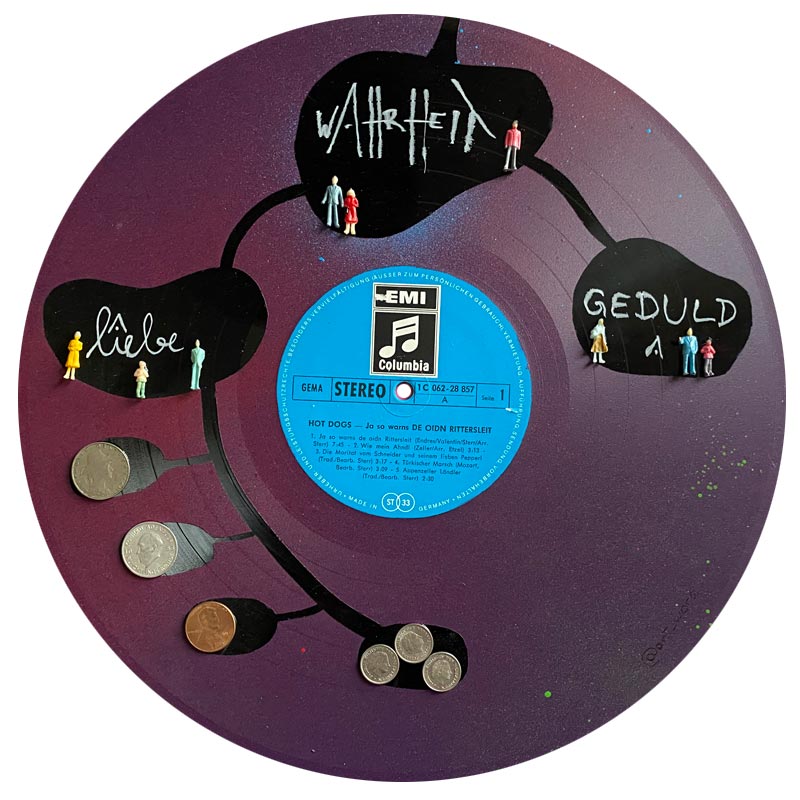 Nach der Ausstellungszeit konntet ihr die Schallplatten in einer Auktion über instagram bei gretl.wand ersteigern. Das jeweils höchste Gebot bekam 3..2..1 eine tolle Schallplatte. Wir wollten das ganze als Spendenaktion für die beiden Obengenannten verstanden wissen, Ihr ward spendabel und dafür wurdet ihr beschenkt. Dankeschön! Die Spenden gehen zu 100% an „Jenseits von Nelken und Pralinen“ und ClubGretchen.